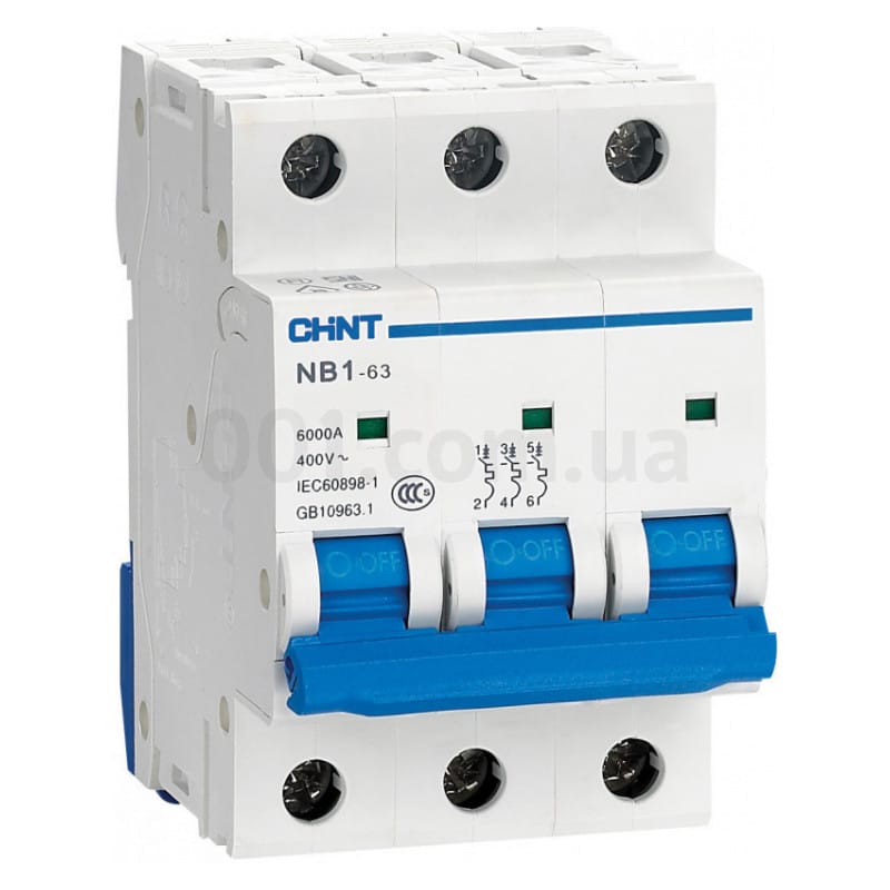 Модульний автоматичний вимикач NB1-63 3P D4 6kA DB, CHINT